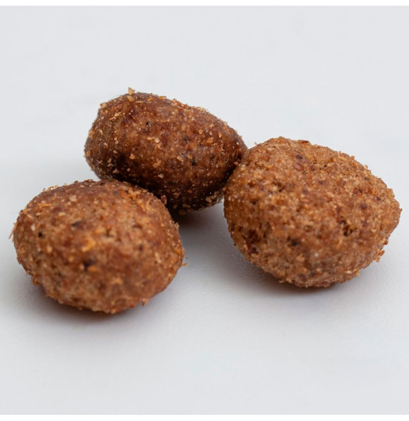 Alto contenido proteico: 44 % proteína bruta, con aproximadamente 89-91 % de origen animal, lo que favorece la masa muscular y estimula la ingesta de agua, beneficiando la salud urinaria.