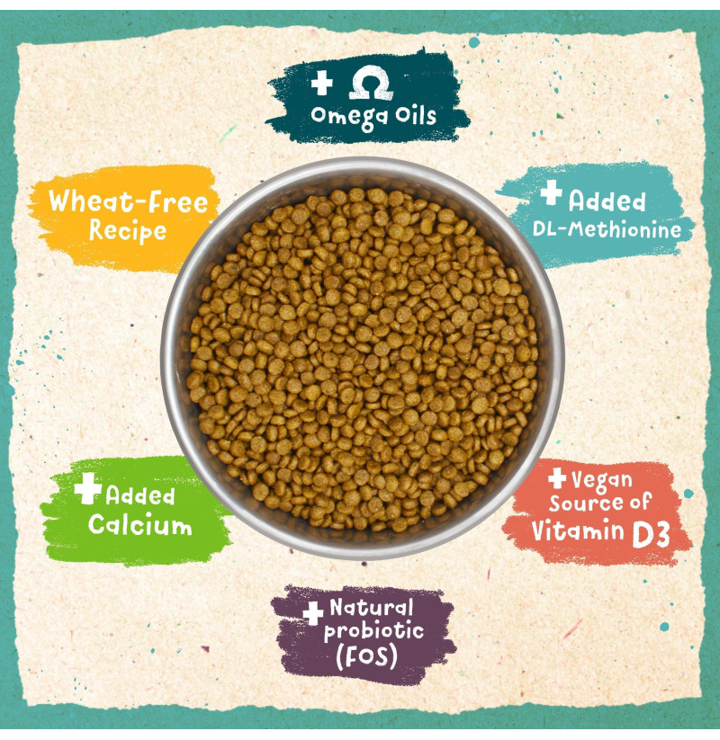 Soja, arroz blanco, maíz, aceite de girasol, guisantes, levadura de cerveza, pulpa de remolacha, minerales, orujo de tomate, palatante a base de levadura, vitaminas, extracto de yuca Schidigera (0.09%), fructooligosacáridos (0.01%)