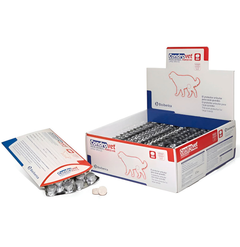 Condrovet Force HA (razas grandes) es la versión especializada para perros de mayor tamaño de la línea Condrovet de Bioiberica. Su fórmula ha sido optimizada para satisfacer las demandas articulares de perros grandes, incorporando dosis más elevadas de ingredientes activos que ayudan a mantener la salud del cartílago, mejorar la lubricación de las articulaciones y proteger frente al desgaste ocasionado por el peso y el ejercicio intenso.