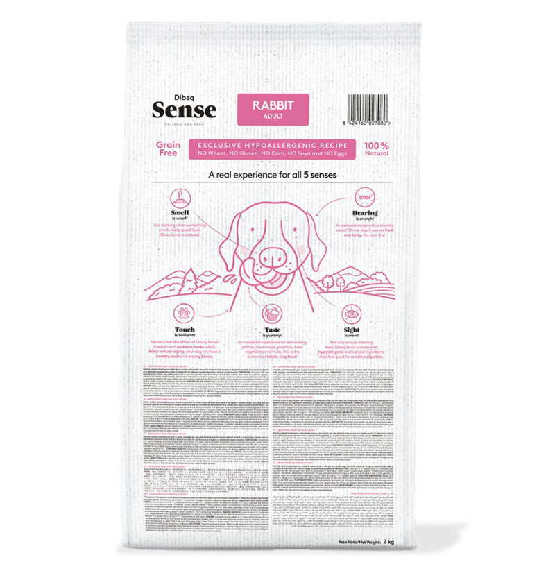 Dibaq Sense Grain Free Sensitive Conejo es un alimento seco completo especialmente formulado para perros adultos y senior de todas las razas con digestiones sensibles, intolerancias o alergias alimentarias. Esta receta hipoalergénica está elaborada sin cereales y utiliza ingredientes 100% naturales cuidadosamente seleccionados para garantizar una excelente tolerancia digestiva.