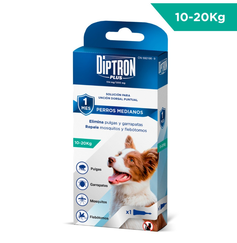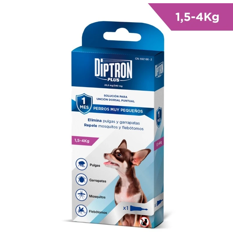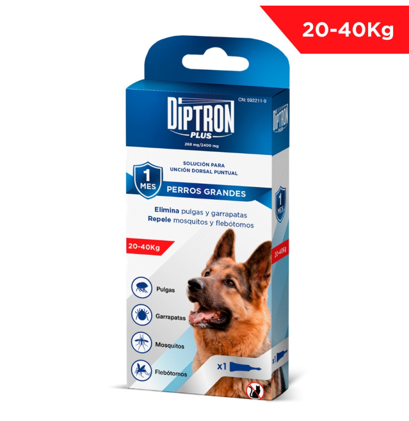 Diptron Plus está disponible en varios formatos adaptados al peso del perro, permitiendo ajustar la dosis de forma segura y eficaz.