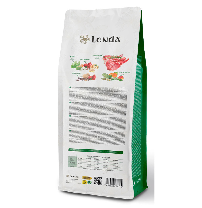 El Pienso Lenda Cordero es un alimento completo e hipoalergénico diseñado para perros jóvenes y adultos de todas las razas. Su fórmula destaca por un 27% de cordero (24% deshidratado y 3% hidrolizado), complementado con 12% de aves de corral (6% pollo deshidratado y proteína plasmática de ave), y 11% de aceite de pollo filtrado. Además, incluye aceite de salmón, arroz, pulpa de remolacha y levadura de cerveza, proporcionando una nutrición equilibrada y sabrosa para tu mascota.